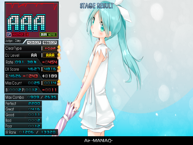 唐突に目線や力の入れ方のコツを思い出したようで、思った以上に高難度も押せてしまいました。怪我の一件から、なるべく手に負担が掛からないような姿勢を意識するようにはしていますが 、それにしても十分すぎるほど叩けたので自分でもびっくり。今までの僕だったらバカみたいに特攻プレイをしていたところですが、ぐっと堪えてそこそこで切り上げたのが今日の偉いポイント。焦らず焦らず……。